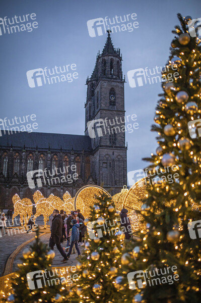 Lichterwelt auf dem Domplatz - Die Licherwelt Magdeburg mit der umfangreichste Weihnachts- und Winterbeleuchtung in Mitteldeutschland verteilt über die ganze Stadt. Magdeburg, 27.11.2022
