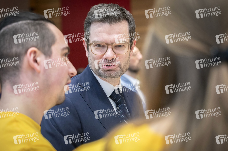 Marco Buschmann bei der Pressekonferenz zur Vorstellung des Wahl-O-Mat zur Bundestagswahl 2025 im dbb forum. Berlin, 06.02.2025