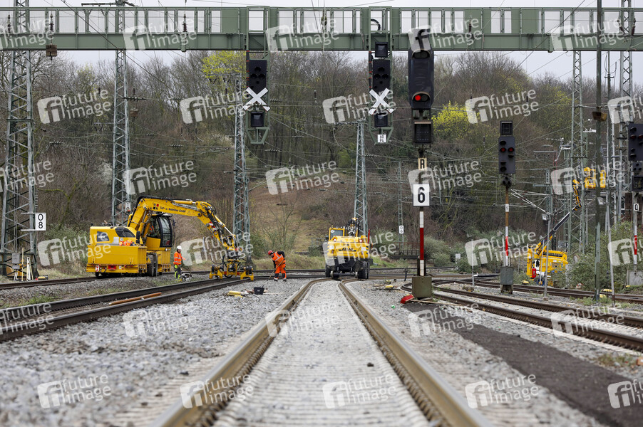 Zweiwegebagger beim Fototermin 'Endspurt für das Elektronische Stellwerk (ESTW) Linker Rhein' am Bahnhof Köln-West. Köln, 13.03.2024