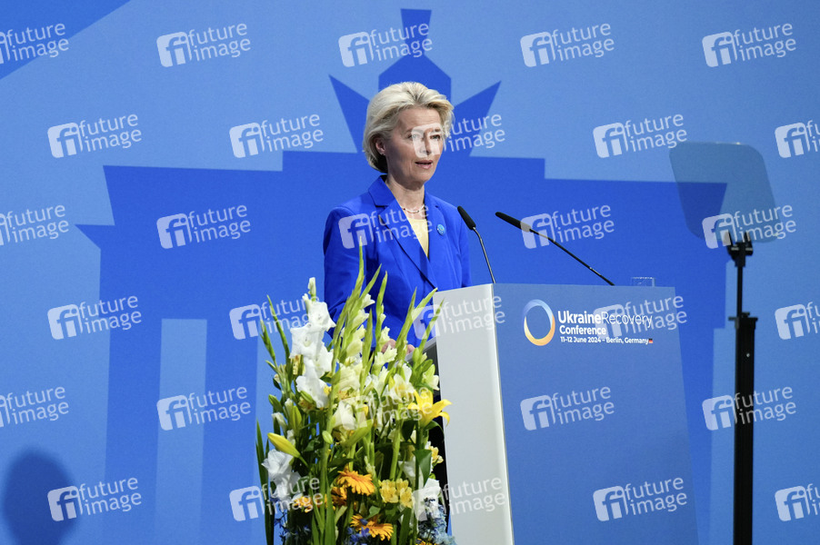 Ursula von der Leyen bei der Eröffnung der Ukraine Recovery Conference 2024 unter dem Motto 'United in Defense. United in Recovery. Stronger together.', auf dem Messegelände. Berlin, 11.06.2024