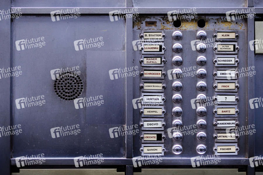 DSGVO, Datenschutz-Grundverordnung, Datenschutzgrundverordnung, Klingel, Klingelmäuschen, Sprechanlage, Gegensprechanlage, Briefkaste, Ladungsfähige Adresse, Türklingel, Türklingeln, Anschrift, EU-Regel, Klingelschild, Namensschild, Klingelschilder, Namensschilder, Datenschutz, Name, Klarname, Nachname, Anschrift, Adresse, persönliche Daten, Privatadresse, Privatanschrift, Hausklingel, Briefkastenschilder, Türsprechanlage, Haustüre öffnen, Nachbar, Nachbarschaft, Mieten, Wohnung, Wohnen, Mieter, Apartment, Briefkasten, Briefkästen, Mieternamen, Symbolbild, Symbolfoto