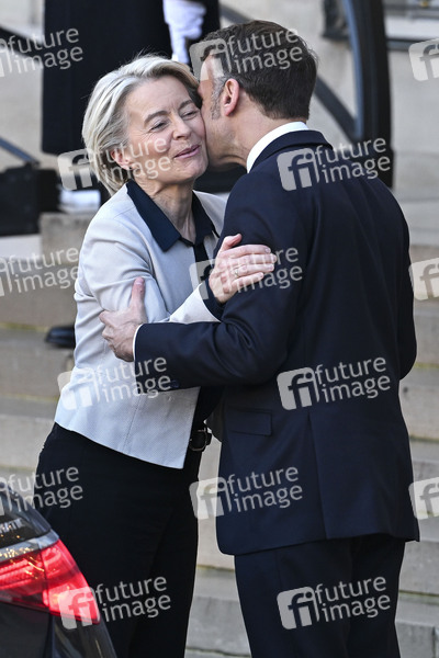 Ursula von der Leyen und Emmanuel Macron beim Treffen der Koaltion der Willigen zu Beratung über die militärische Unterstützung für die Ukraine im Élysée-Palast. Paris, 06.01.2026