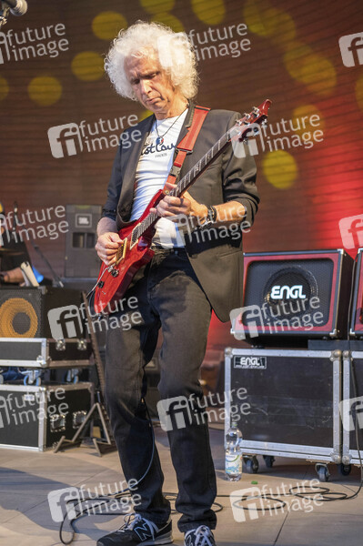 Jupp Bauer von The Lords live bei einem Konzert ihrer Abschiedstournee im Kurpark. Bad Münder, 16.08.2019