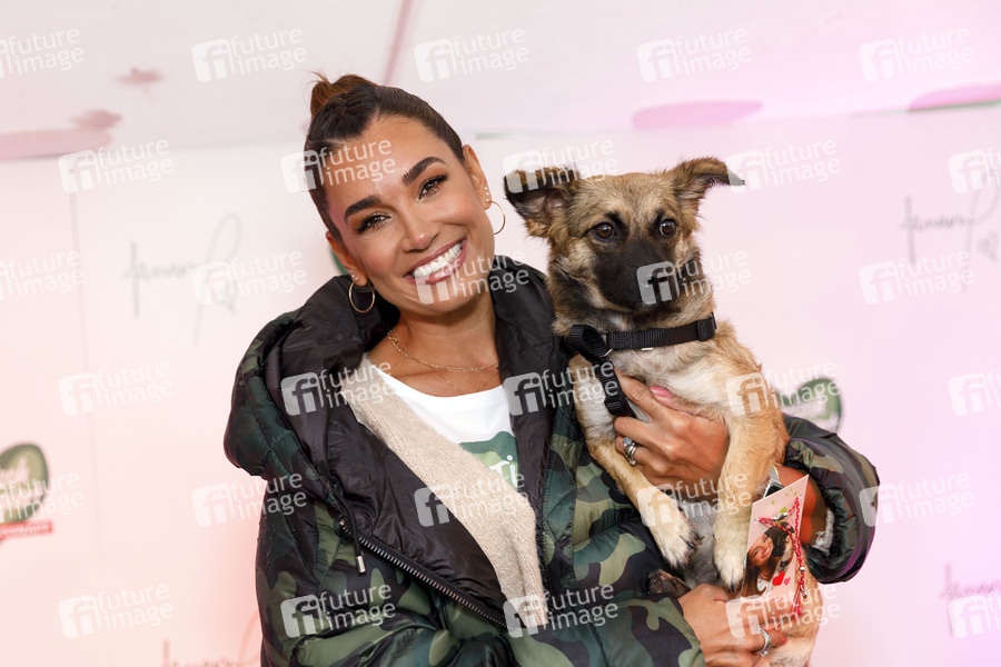 Jana Ina Zarrella mit Hund Cici beim Pressetermin zur Charity-Initinative 'Tierisch engagiert' unterstützt von Fressnapf im Tierheim Köln-Zollstock. Für die Aktion 'Freundschaft verbindet' hat sie ein Freundschaftsarmband designt, dessen Erlöse direkt an den Tierschutz und in tiertherapeutische Einrichtungen fließt. Köln, 29.09.2020