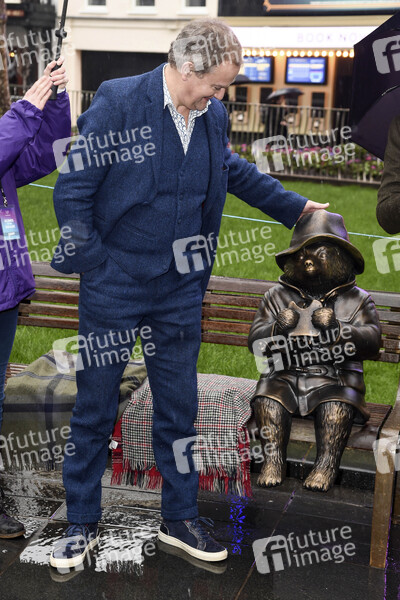 Hugh Bonneville mit Paddington Bär Statue