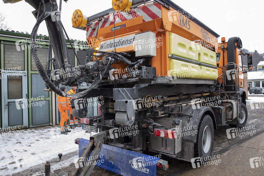 Multifunktionales Fahrzeug als Schneeräumfahrzeug im Winterdienst beim Fototermin mit freundlicher Genehmigung der BDL Leitung des Betriebsdienstes der Autobahnmeisterei Remscheid. Remscheid, 10.02.2021