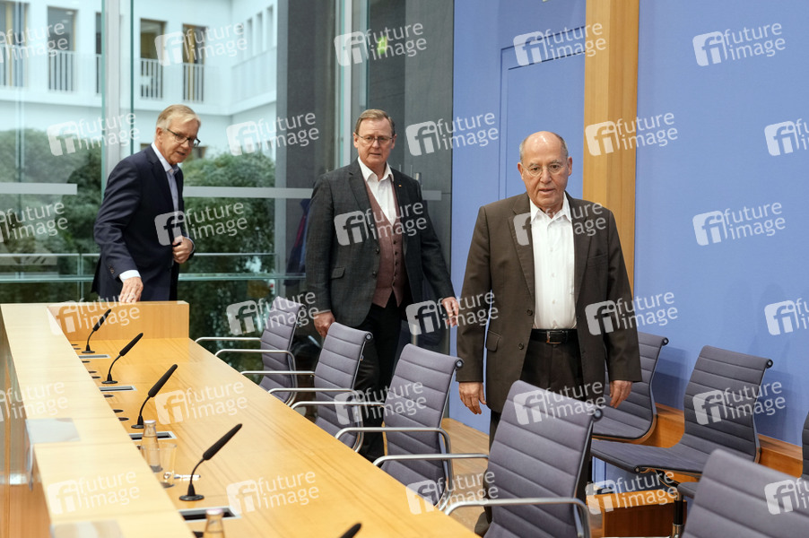 Dietmar Bartsch, Bodo Ramelow und Gregor Gysi bei der Bundespressekonferenz 'Projekt Silberlocke geht an den Start' im Haus der Bundespressekonferenz. Berlin, 20.11.2024
