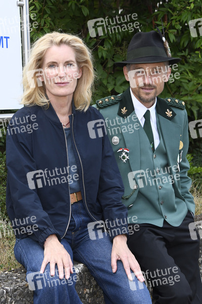 Maria Furtwängler und Volker Bruch beim Fototermin am Set des ARD-Krimis 'Tatort - Schützenfest' (AT) vor dem LKA Niedersachsen am Waterlooplatz. Hannover, 09.07.2025