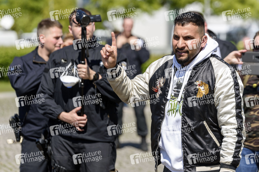 Vegan-Koch Attila Klaus Peter Hildmann bei dem von ihm initierten Spontanprotest von Gegnern der Corona-Beschränkungen im Rahmen der Eindämmungsverordnung auf der Reichstagswiese in Berlin-Mitte. Die Polizei erteile Platzverweise und nahm einige Personen fest. Unter den Demonstranten befanden sich Reichbsbürger, Rechsradikale, Hooligans, Impfgegner, QAnon-Anhänger, religiöse Gruppen und Verschwörungstheoretiker.Berlin, 09.05.2020