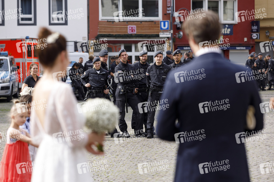 Hochzeit, Hochzeitspaar, Braut, Bräutigam, Heirat, Polizeischutz, Heiraten, Klimaschutz, Schulstreiks für das Klima, Klima-Demonstration, Klima-Demo, Klimademo, Rede, Freitagsdemo, Schülerdemo, Schüler, Demonstration, Demonstranten, Demo, Kundgebung, Protest, Aktion, Banner, Parolen, Politik, Klimaschutz, Erderwärmung, Klimakrise, Klimawandel, CO2-Ausstoß, CO2-Steuer, Kohleausstieg, Polizeimaßnahme, Polizei-Maßnahme, Einsatzbelastung, Demo, Demonstration, Polizeikette, Polizei-Überstunden, Kennzeichnungspflicht, Polizeigesetz, Polizeischutz, Versammlungsrecht, Polizeikräfte, Polizei, Polizeiuniform, Polizeidienst, Polizisten, Polizist, Polizistin, Polizeieinsatz, Gewaltmonopol, Polizeibeamte, Polizeibeamter, Dienstwaffenträger, Polizei-Hundertschaft, Innere Sicherheit, Innenpolitik, Uniform, Polizei-Uniform, Polizeiuniform, Polizei NRW, Polizei Köln, Einsatzhundertschaft, Polizeikräfte, Polizeipräsenz, Polizeiarbeit, Polizeiaufgebot, Dienstwaffenträger, Dienst an der Waffe, Bereitschaftsdienst, Sicherheitsmaßnahmen, Landespolizei, Streifendienst, Polizeilaufbahn, Polizeiausbildung, Polizeikontrolle, Ausweispflicht, Blaulicht, Kontrolle, Ermittlung, Polizei Köln, Kölner Polizei, Streife, Polizei NRW, gehobener Dienst, höherer Dienst, German Police, Cops, Streifenpolizei, Beamte, Staatsdiener, Polizeiruf, Ermittlungen, Ermittler, Ermitteln, Polizeiarbeit, Polizeirevier, Patrouille, Bereitschaftspolizei, Frauen bei der Polizei, Sicherheitspolitik, Sicherheit, Polizeilaufbahn, Beamtenlaufbahn, Innenpolitik, Bereitschaftspolizei, Hundertschaft, Symbolbild, Symbolfoto