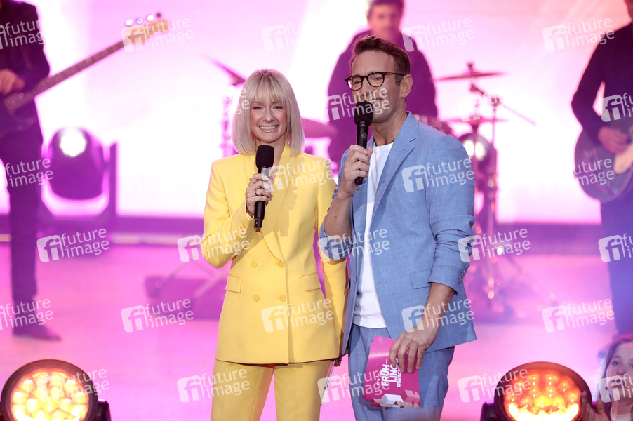 Christin Stark und Peter Imhof in der TV-Show 'MDR-Frühlingserwachen' auf der Freilichtbühne am Borberg. Kirchberg, 10.05.2025