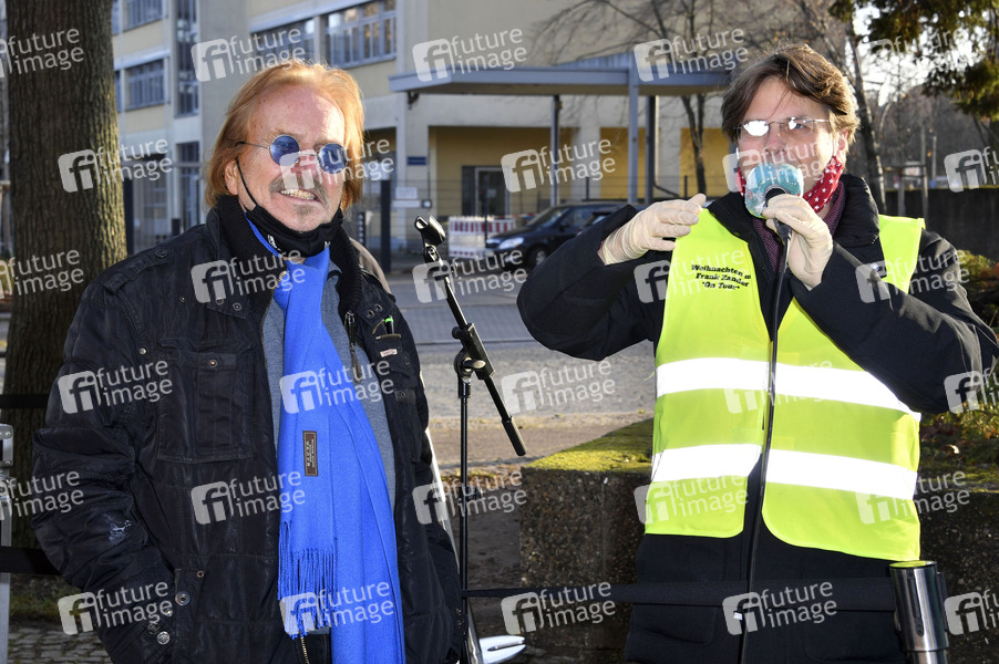 Frank Zander und Marcus Zander verteilen Essen und Geschenke aus dem Food Truck an Obdachlose und Bedürftige. Berlin, 18.12.2020