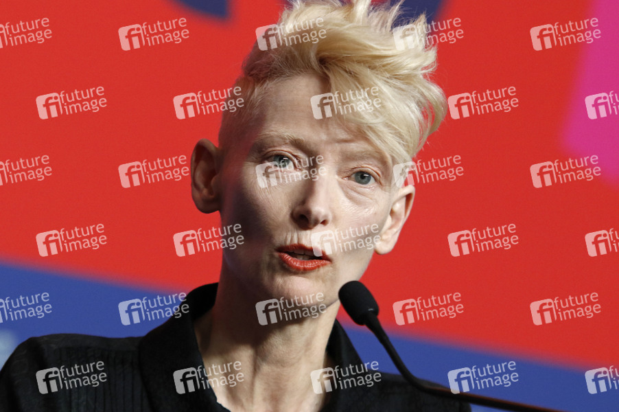 Tilda Swinton bei der Pressekonferenz zur Verleihung des Goldenen Ehrenbären auf der Berlinale 2025 / 75. Internationale Filmfestspiele Berlin im Hotel Grand Hyatt. Berlin, 14.02.2025