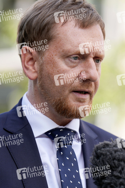 Michael Kretschmer bei der Besprechung der Regierungschefinnen und Regierungschefs der Länder bei der Ministerpräsidentenkonferenz in der Landesvertreung Hessen. Berlin, 20.06.2024
