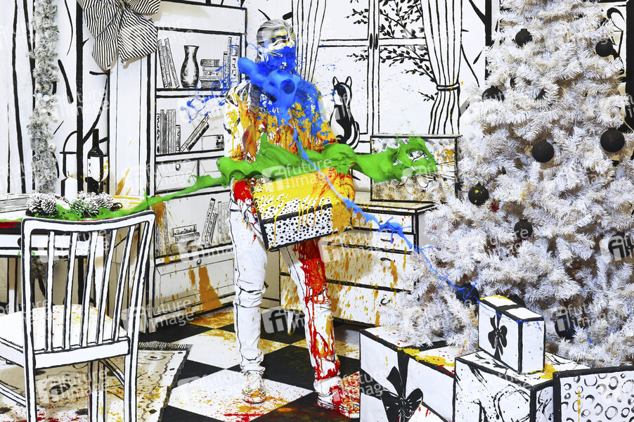 Body Art, Künstler, Körperkunst, Bodypainting, Body Painting, Körpermalerei, Kunst, Art, Fineart, Farbe, Fotografie, Fotoshooting, Fotoart, Fotokunst, Frau, Model, Fotomodell, Fotomodel, farbig, bunt, abstrakte Kunst, moderne Kunst, Artperformance, Kunstperformance, Splash, Splashart, Bunte Weihnacht, Farbkleckse, Farbspritzer, Adventszeit, Weihnachtszeit, Weihnachtsfest, Xmas, X-Mas, Weihnachten, Heilig Abend, Weihnachtsbaum, Tannenbaum, Christbaum, Geschenk, Geschenke, Frohes Fest, Symbolfoto, Symbolbild, model, contempory art, colour, color, Advent Season, Christmas time, Christmas gifts, Christmas tree, Happy Holidays, Christmas Eve, Merry Christmas