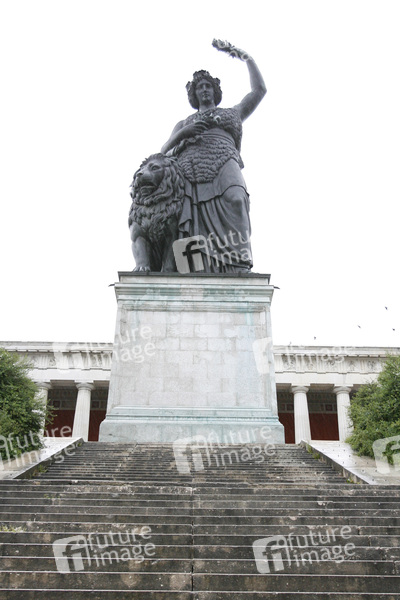 weibliche Symbolgestalt und weltliche Patronin Bayerns, im Auftrag von König Ludwig I. in den Jahren 1843-1850 errichtet, Entwürfe von Leo von Klenze, 18.52 Meter hoch, Bronzehohlguss, Höhe des Steinsockels 8.92 Meter, Bildhauer Ludwig Schwanthaler