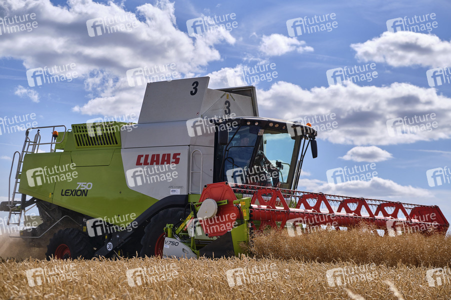 Claas Lexion 750, Erntemaschine, Frontsichelmäher, Nutzfahrzeug, Präzisionslandwirtschaft, Landwirtschaft, Ackerbau, Raps, Halme, Feld, Landwirtschaft, Dürre, Trockenheit, Wasser, Regen, Grundwasser, Wasserknappheit, Grundwasserspiegel, Grundwasserpegel, Trockenphase, Ernte, Ernten, Landwirte, Bauern, Acker, Äcker, Agrar, Agrarwirtschaft, Erntewetter, Ernteausfall, Ernteausfälle, Futterkrise, Missernte, Futter, Saat, Saatgut, Anbau, Fruchtbarkeit, Bauern, Bauernverband, Anbau, Bio, Dünger, Symbolbild, Symbolfoto