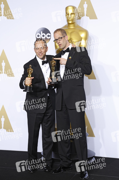 Jonas Rivera und Pete Docter (Bester Animationsfilm 'Alles steht Kopf / Inside Out') im Presseraum der Oscar Verleihung 2016 / 88th Academy Awards im Loews Hollywood Hotel. Los Angeles, 28.02.2016