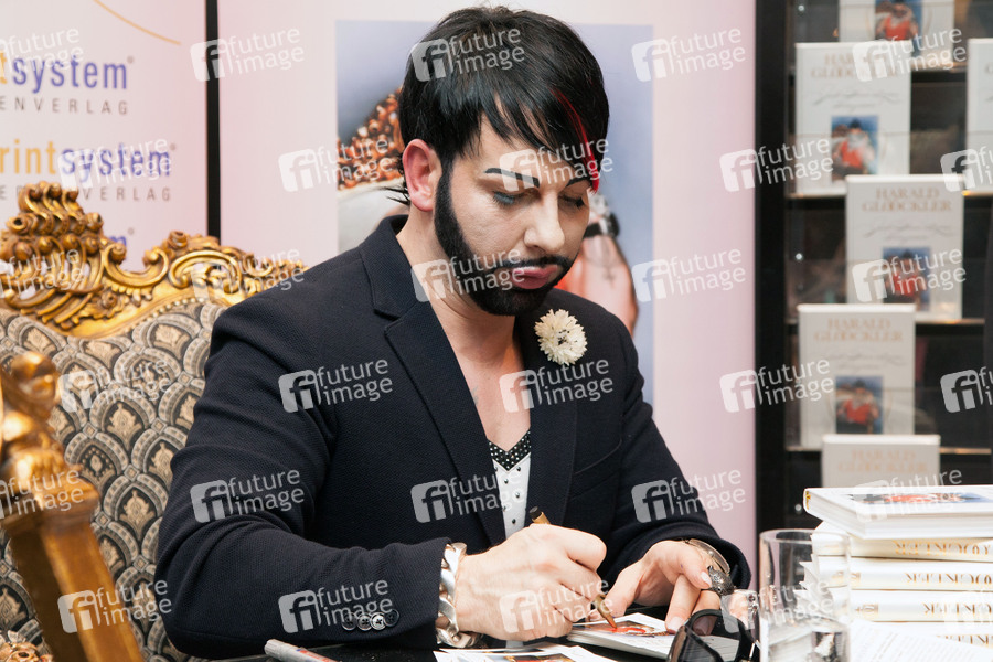 Harald Glööckler signiert sein Buch 'Jede Frau ist eine Prinzessin' in der Mayersche Droste Buchhandlung, Düsseldorf