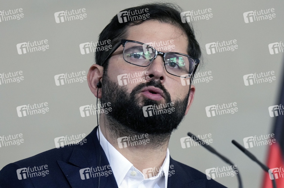 Gabriel Boric beim Empfang des Präsidenten von Chile mit militärischen Ehren und zu einem gemeinsamen Gespräch mit dem Bundeskanzler mit anschließendem Pressestatement im Bundeskanzleramt. Berlin, 10.06.2024