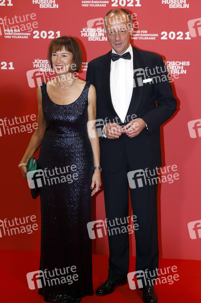 Friedrich Merz mit Ehefrau Charlotte Merz bei der Verleihung des 'Preises für Verständigung und Toleranz' im Glashof des Jüdischen Museums. Berlin, 13.11.2021