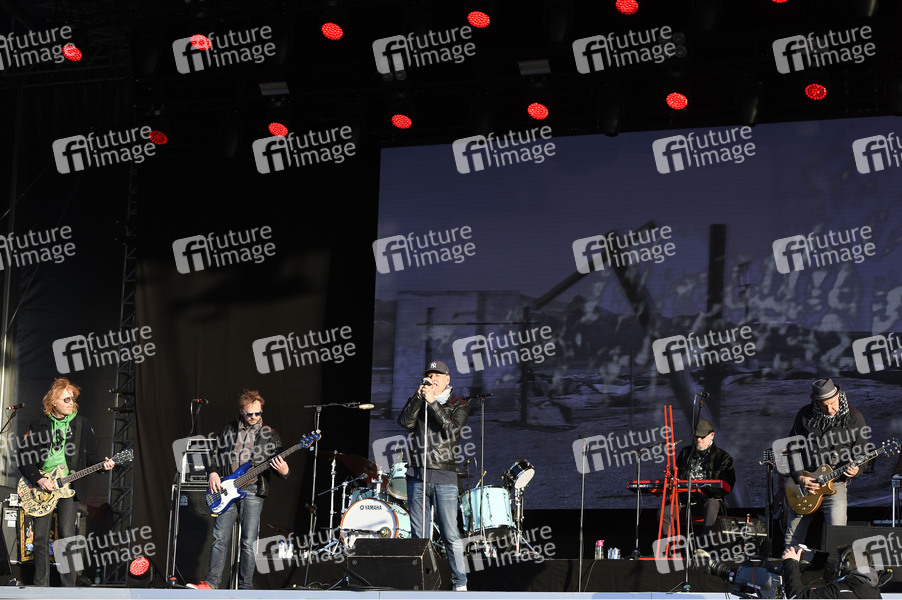 Christof Stein-Schneider, Christian Decker, Kai Wingenfelder, Gero Drnek und Thorsten Wingenfelder von Fury in the Slaughterhouse live beim Autokultur-Konzert auf dem Schützenplatz. Die Besucher verfolgen unter Berücksichtigung klarer Hygiene-Vorschriften während der Corona-Krise den Auftritt aus dem Auto. Hannover, 14.05.2020