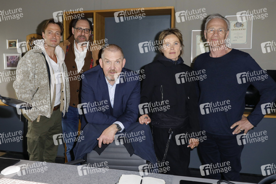 Andreas Pietschmann, Thomas Loibl, Dietmar Bär, Karoline Eichhorn und Klaus J. Behrendt beim Fototermin bei den Dreharbeiten zum ARD-Krimi 'Tatort - Colonius' im Kommissariat-Set in der Max-Planck-Straße. Köln, 26.04.2024