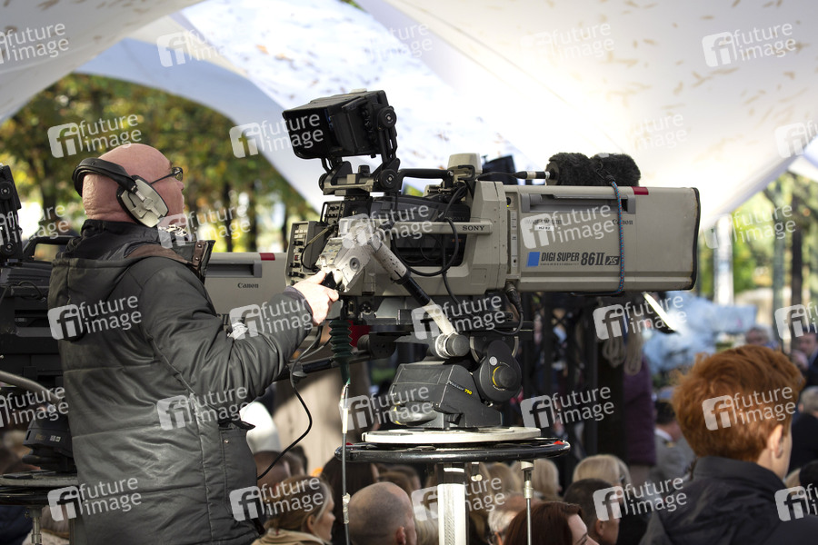 Kameramann bei der Einweihung des Denkmals für die im Auslandseinsatz getöteten französichen Soldaten im Eugénie-Djendi-Garten im André-Citroën-Park. Paris, 11.11.2019