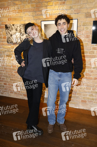 Jule Hermann und Riccardo Campione bei der Eröffnung der Fotoausstellung 'Zuversicht und Lebensfreude' der Fotografen Florian Froschmayer & Arne Friedrich in der Stay Curious Media Gervinusstrasse 12. Berlin, 10.01.2025