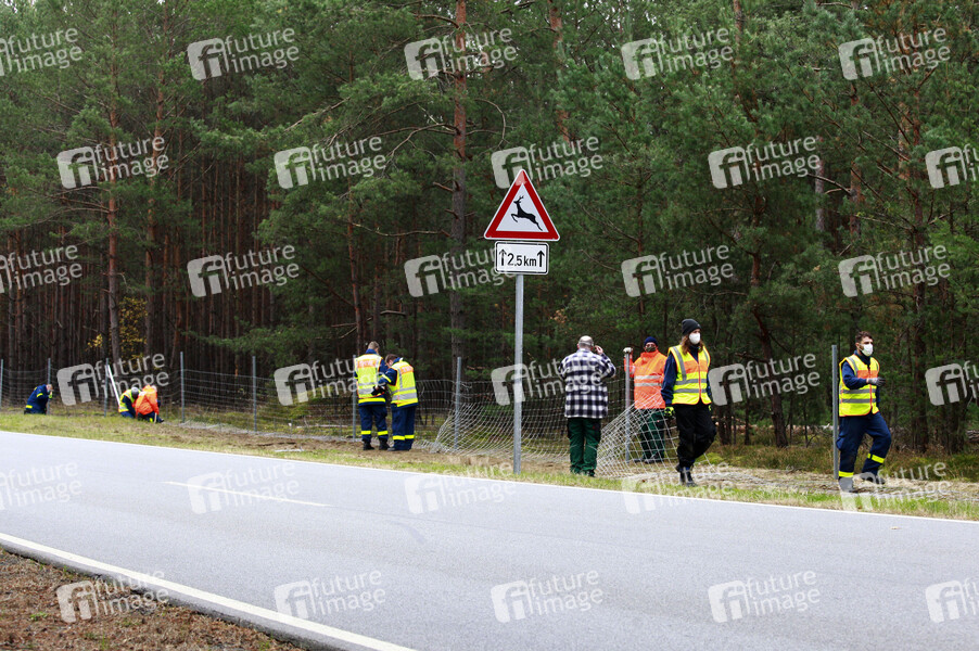 Pressetermin zum Bau eines festen Zauns an der Restriktionszone zur Eindämmung der Afrikanischen Schweinepest im Truppenlager Werdeck. Krauschwitz, 11.11.2020