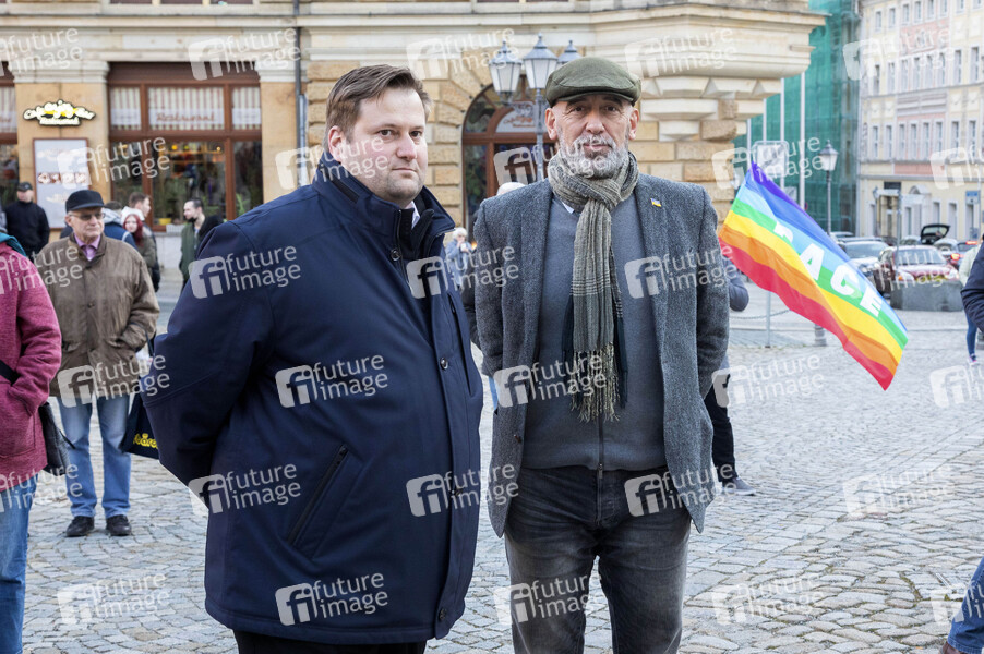 Alex Theile und Alexander Ahrens bei der Friedenskundgebung statt Politischer Aschermittwoch der Partei Die Linke und Friedens- und Solidaritätsbekenntnis für die Ukraine. Bautzen. 02.03.2022