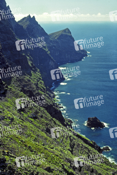 Gran Canaria, Steilkueste, Meer, Felsen, Fernsicht, Horizont, Schwindel, Blau, Gruen, Felsnadeln, Hoch, Tourismus