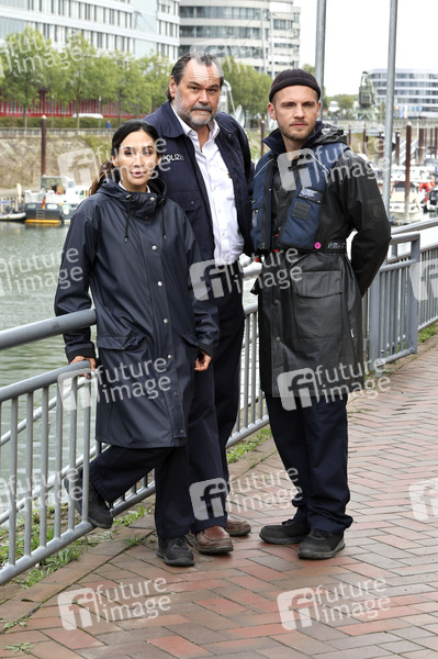 Yasemin Cetinkaya, Markus John und Niklas Osterloh beim Fototermin am Set der ARD TV-Serie 'WaPo Duisburg' im Duisburger Innenhafen. Duisburg, 20.09.2022