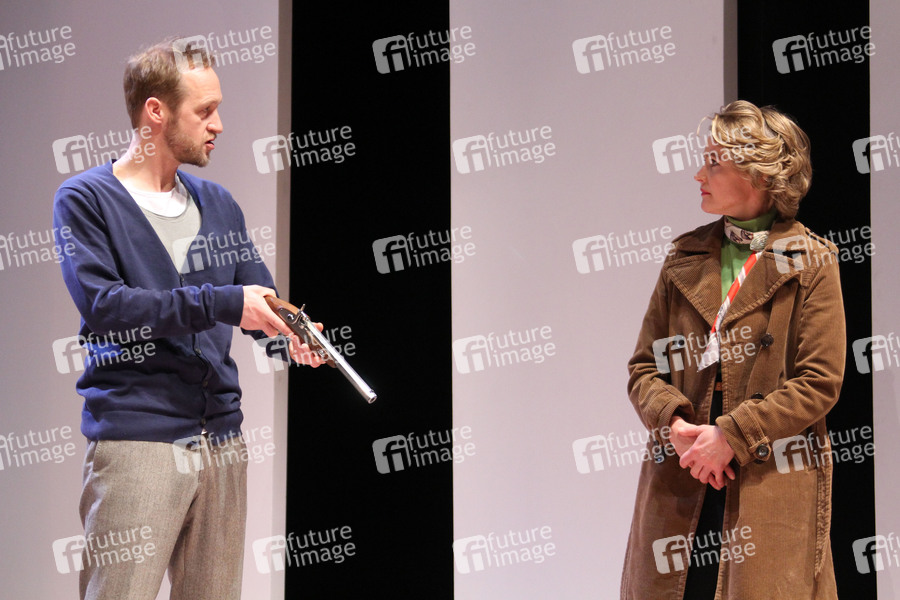 Stephan Kampwirth und Karoline Eichhorn bei der Fotoprobe zum Theaterstück 'Wir lieben und wissen nichts' von Moritz Rinke an den Hamburger Kammerspielen. Hamburg, 15.03.2013
