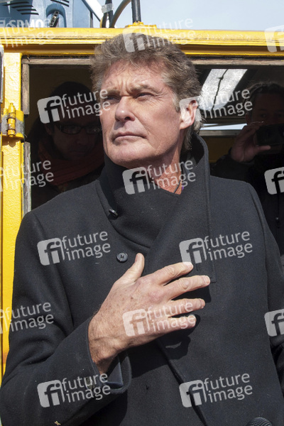 David Hasselhoff protestiert an der East Side Gallery gegen Abbau der Berliner Mauer. Berlin, 17.03.2013