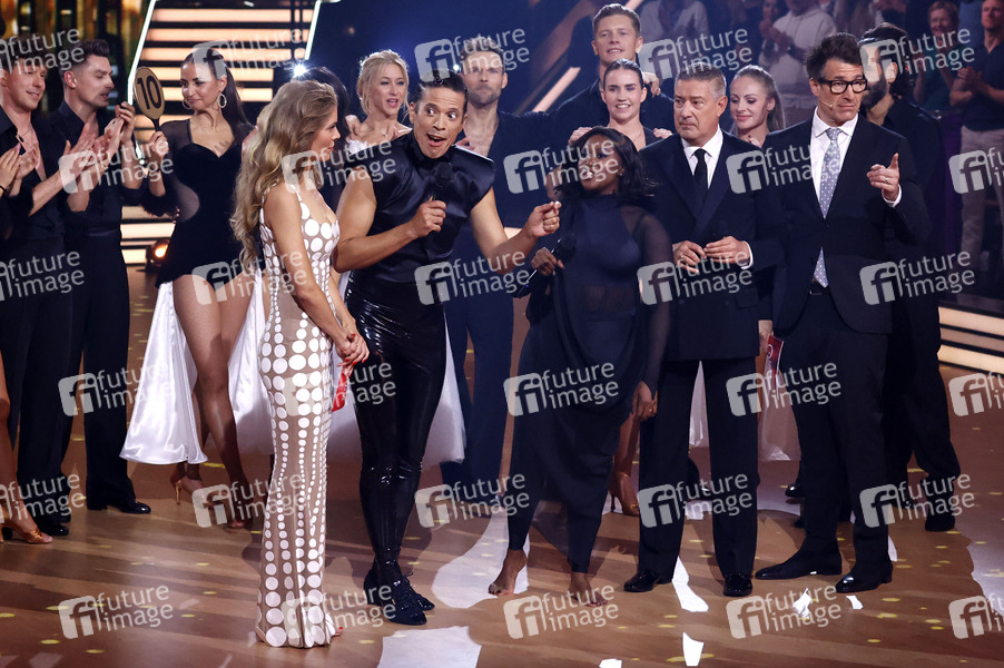 Victoria Swarovski, Jorge González, Motsi Mabuse, Joachim Llambi und Daniel Hartwich in der sechsten Live-Show der 17. Staffel der RTL-Tanzshow 'Let's Dance' im MMC Coloneum. Köln, 12.04.2024