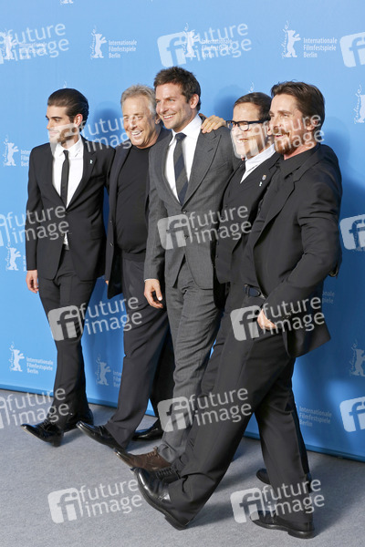 Matthew Budman, Charles Roven, Bradley Cooper, David O. Russell und Christian Bale beim Photocall zu 'American Hustle' auf der Berlinale 2014 / 64. Internationale Filmfestspiele Berlin, 07.02.2014