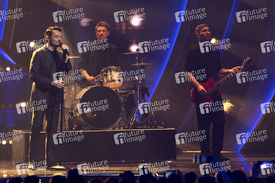 Giovanni Zarrella und Revolverheld in der ZDF TV-Show 'Die Giovanni Zarrella Show' in der Messehalle A1. Friedrichshafen, 15.02.2025