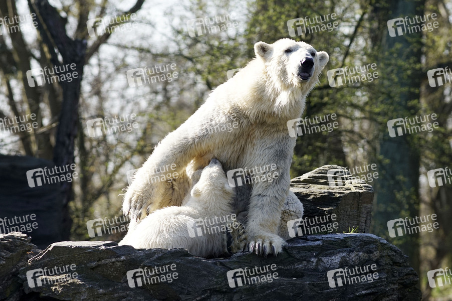 Eisbärin Hertha und Mutter Tonja bei ihrem ersten Ausflug nach der Namensgebung im Tierpark Berlin. Berlin, 02.04.2019