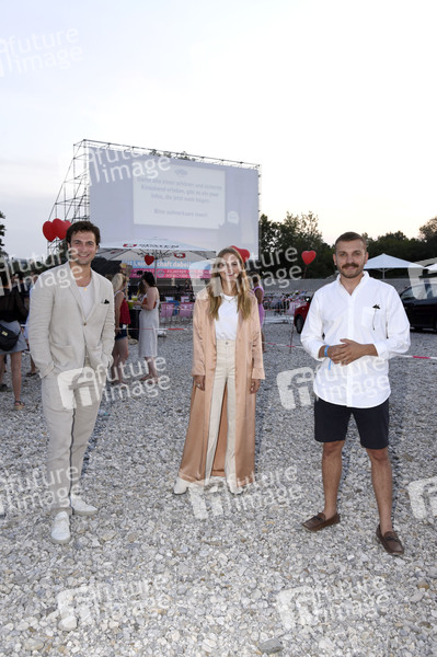 Samuel Schneider, Alicia von Rittberg und Edin Hasanovic bei der Premiere des Kinofilms 'Hello Again - Ein Tag für immer' beim Filmfest München Pop-Up im PopUp Autokino auf dem Zenith Parkplatz. München, 12.08.2020