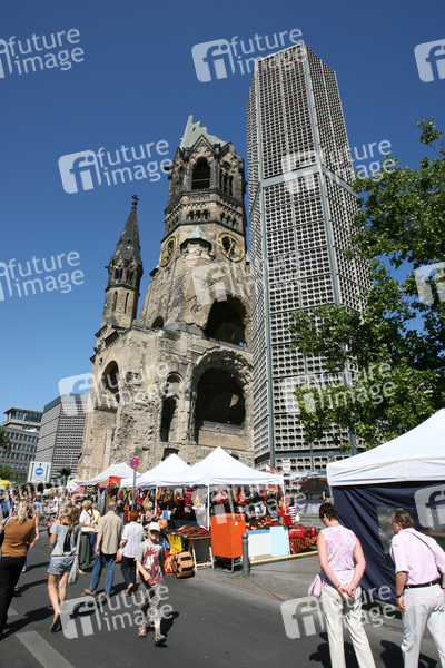 Historischer Teil erbaut 1891-1895, Architekt: Franz Schwechten, im Zweiten Weltkrieg wurde die Kirche 1943 bei alliierten Bombenangriffen auf Berlin weitgehend zerstört, Höhe der Turmruine 68 m, neue Elemente erbaut zwischen 1951 und 1961, Architekt Egon Eiermann, wichtiges Denkmal der Nachkriegsmoderne