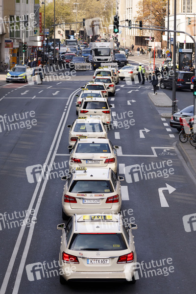 Aus Protest gegen Uber nehmen mehrere hundert Taxen an einem Autokorso durch die Innenstadt teil. Köln, 10.04.2019