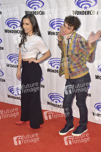Maria Gabriela de Faria und Benjamin Wadsworth beim Photocall zur Syfy TV-Serie 'Deadly Class' auf der WonderCon 2019 im Anaheim Convention Center. Anaheim, 30.03.2019