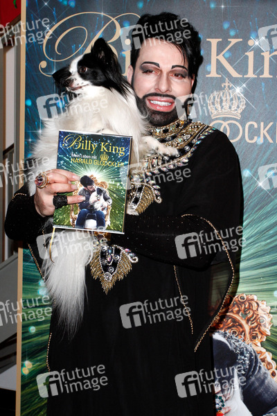 Hund Billy King und Harald Gloeoeckler bei der Buchvorstellung 'Billy King - mein Leben mit Harald Glööckler'. Berlin, 28.02.2013