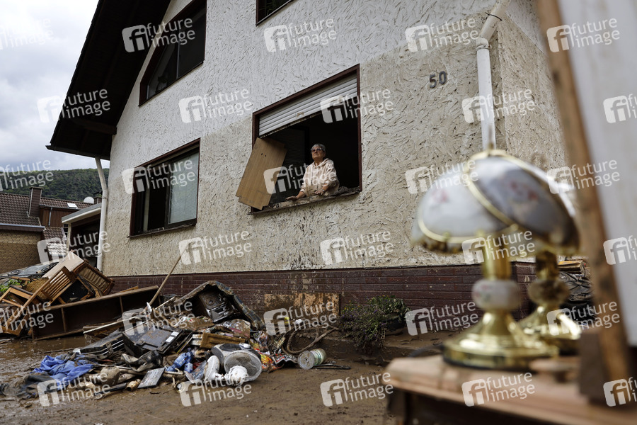 In der Eifel haben heftige Regenfälle und Dauerregen für Überschwemmungen und Überflutungen gesorgt. Im Ahrtal trat der Fluss vielerorts über die Ufer und überschwemmte nicht nur Keller sondern ganze Ortschaften. Im Bild Flutopfer im Ort Dernau (Landkreis Ahrweiler), der beinahe komplett von den Wassermassen geflutet wurde. Viele Menschen verloren alles. Abgebildet mit Einverständnis. Dernau, 15.07.2021