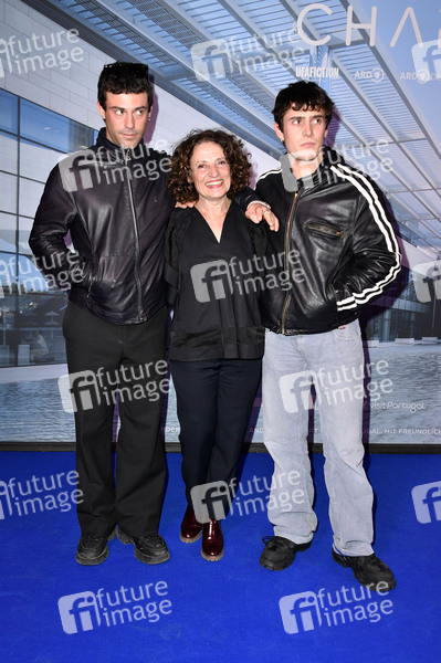 Adriana Altaras mit ihren Söhnen Aaron Altaras und Leo Altaras bei der Premiere der 4. Staffel der Fernsehserie 'Charité' im Zoo Palast. Berlin, 26.03.2024