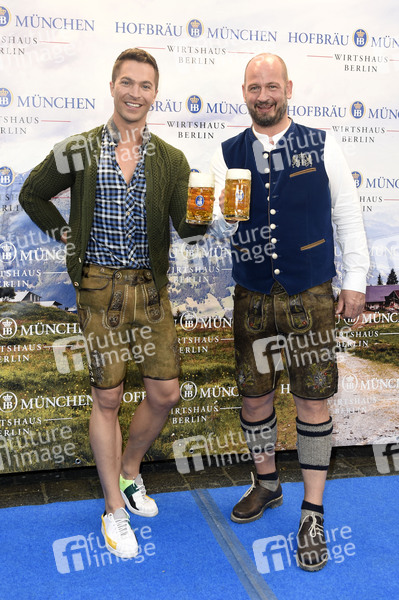 Julian David und Björn Schwarz beim Fassanstich bei der 9. Hofbräu Berlin Wiesn im Hofbräu Wirtshaus Berlin. Berlin, 19.09.2020