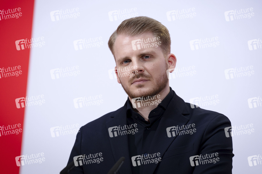 Tim Klüssendorf bei der Pressekonferenz nach der SPD Gremiensitzung im Willy-Brandt-Haus. Berlin, 23.02.2026