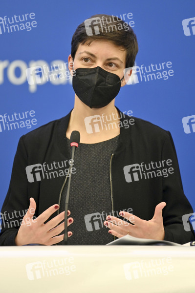 Ska Keller beim Grünen/EFA Briefing im Europäischen Parlament. Straßburg, 14.12.2021