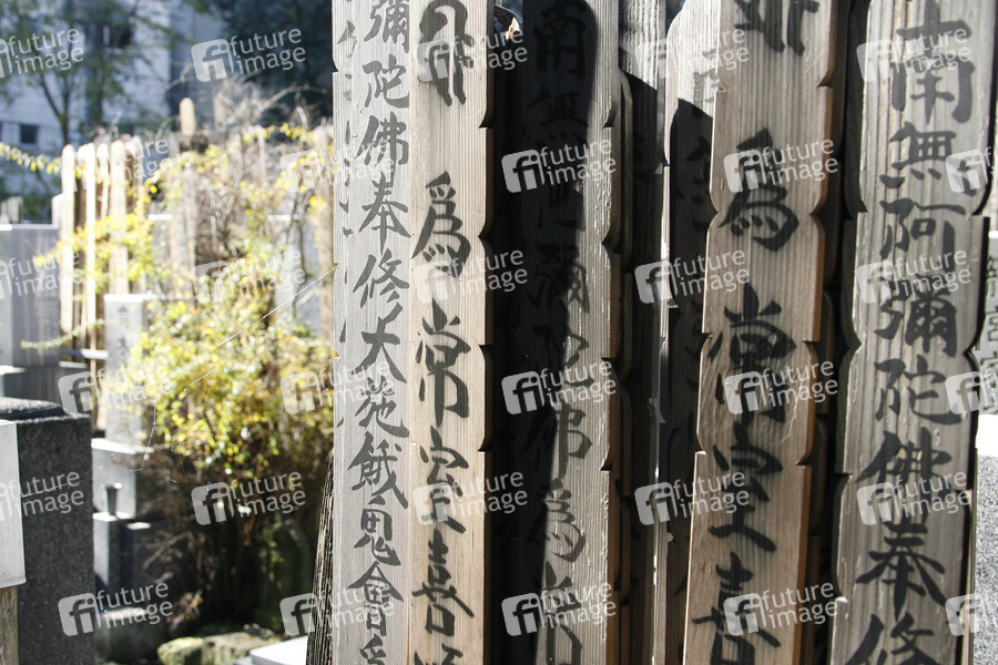 Buddhistischer Friedhof, Grabsteine, japanische Schriftzeichen, Gräber